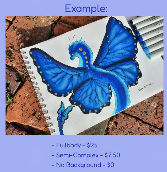 - I accept real money and DeviantArt points.- All of my prices are in AUD.- All of my international transactions are done through Wise or PayPal, but can also be done through a direct deposit if you're in Australia.- You can pay me anytime you like throughout the commission, just as long as it's sent and received! Though please send it altogether rather than in segments.- If I have already begun the drawing of your commission and you cancel, I will refund you a certain amount depending on how far I am in the drawing process. E.g. If I'm 50% through the commission, I will refund you 50% of the full amount due. Say you paid $35, this would amount to a $17.50 refund.- For Traditional Commissions Only: Shipping costs will have to come from your end; I will try my best to find the cheapest option for this.